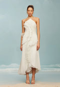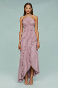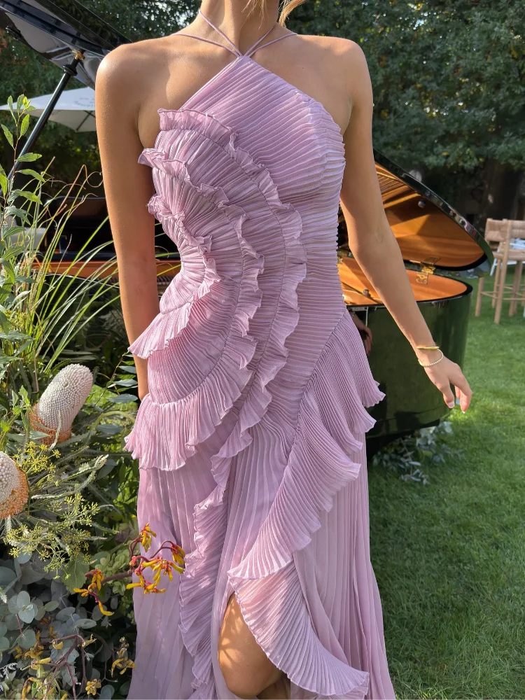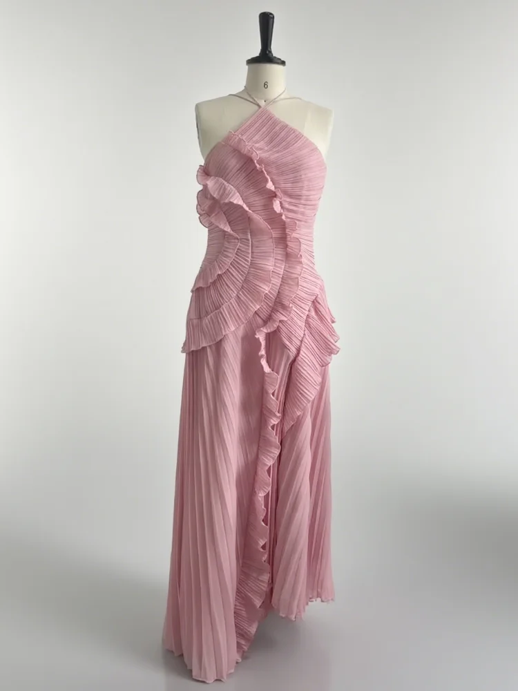 The Modern Maxi Dress blends femininity and sophistication with a fluid, asymmetrical silhouette and delicate layered ruffles. Its lightweight fabric and sleeveless cut bring effortless elegance to any occasion, from casual outings to chic evening events.